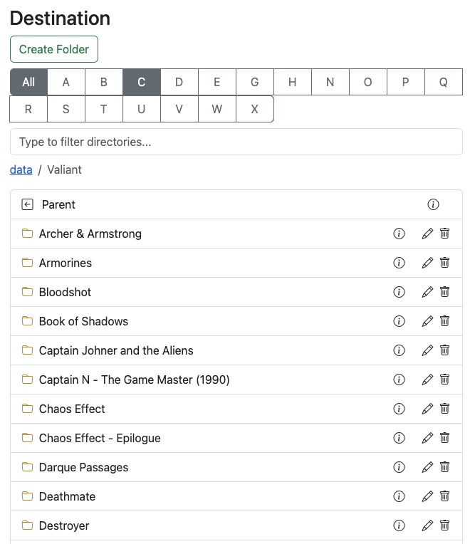 For any directory that has more than more than 25 folders, you can now start typing to filter the list. This does not search within the directories, this just quickly narrows down your results.