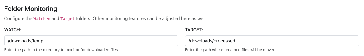 When you have monitoring enabled, you will need to configure a WATCH folder and a TARGET folder.