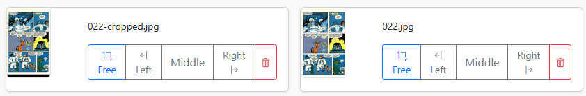 Clicking the will delete the file from the CBZ. This is useful for removing extra images not related to the comic.